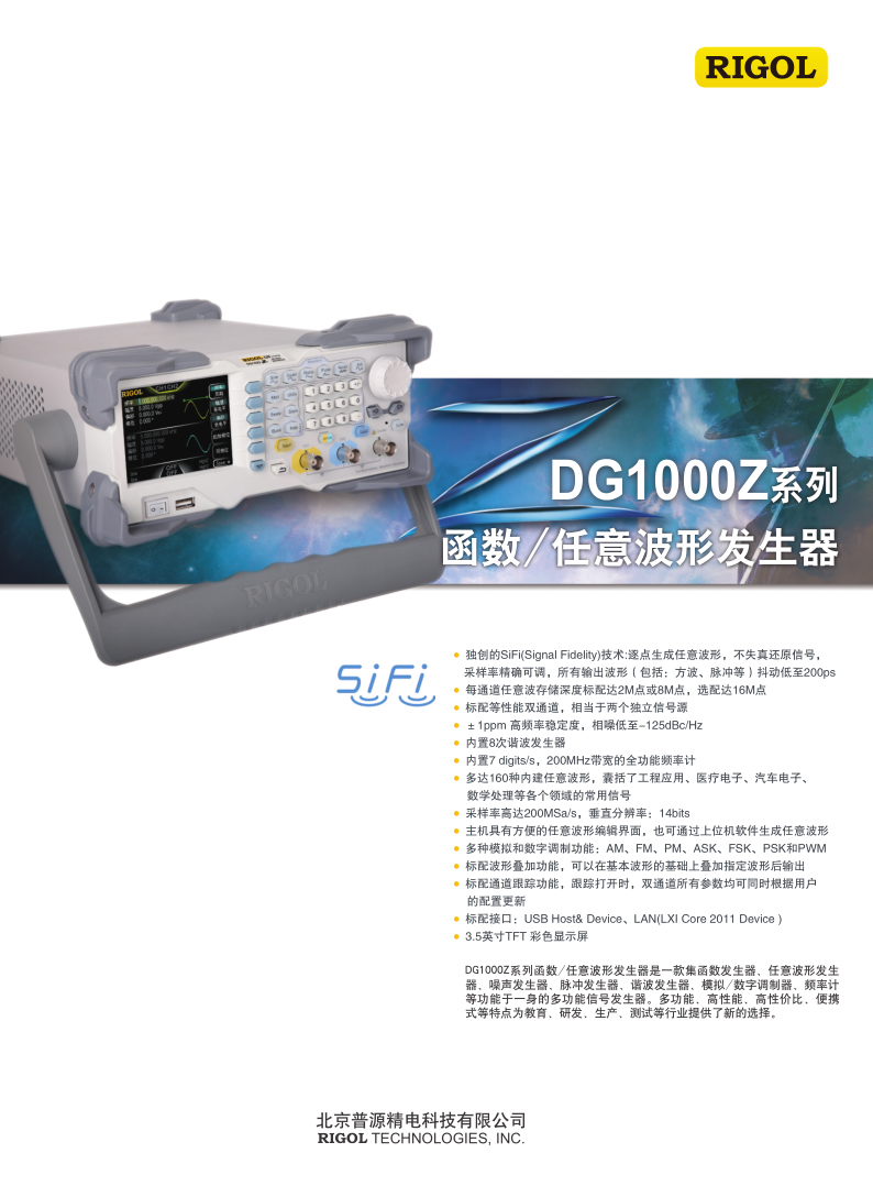 DG1000Z系列函数/任意波形发生器是一款集函数发生器、任意波形发生器、噪声发生器、脉冲发生器、谐波发生器、模拟/数字调制器、频率计等功能于一身的多功能信号发生器。多功能、高性能、高性价比、便携式等特点为教育、研发、生产、测试等行业提供了新的选择。